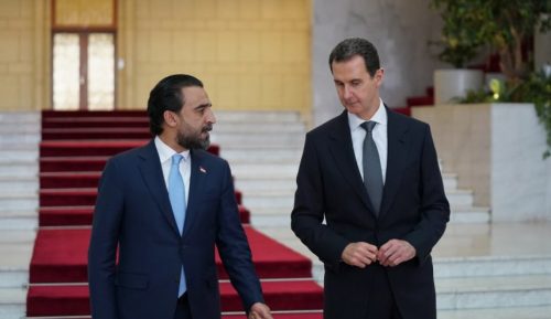 أكّد الرئيس السوري بشار الأسد خلال لقائه رئيس الاتحاد البرلماني العربي رئيس مجلس النواب العراقي محمد الحلبوسي على العلاقات الأخوية بين سوريا والعراق، مشيراً إلى أنّ الامتداد الجغرافي والشعبي بين البلدين يجعل الشعبين يعيشان تحديات متشابهة وتجمعهما مصالح مشتركة، ومن هنا تأتي أهمية دور برلمانَي البلدين كداعم للعمل الرسمي من أجل تعزيز التعاون الثنائي في المجالات التي تنفع الشعبين وتحقق مصالحهما.