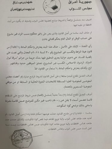 النص المعدل لمقترح تعديل قانون انتخابات مجالس المحافظات