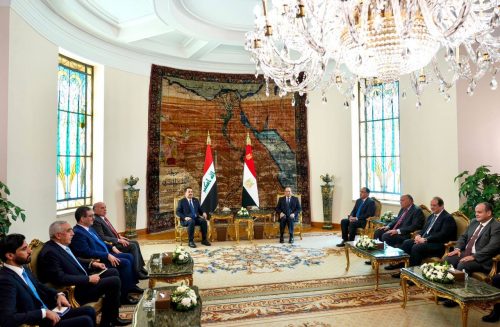 من جانبه، أعرب الرئيس المصري عبد الفتاح السيسي عن “رغبة مصر واستعدادها للتعاون مع العراق في مختلف المجالات”، مؤكداً “اعتزازه بالعراق، ومكانته ودوره في المنطقة”.