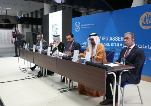 وذكر المكتب الإعلامي لرئيس اتحاد البرلمان العربي في بيان، تلقت*الرأي* الدولية، نسخة منه، أن “الحلبوسي ترأس اجتماع المجموعة العربية للاتحاد على هامش أعمال اجتماعات الجمعية العامة الـ 146 للاتحاد البرلماني الدولي”.