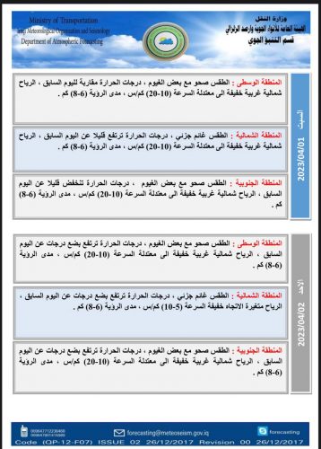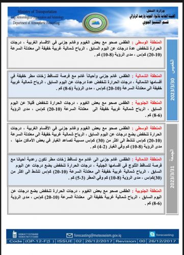 حالة الطقس المتوقعة للأيام الأربعة المقبلة