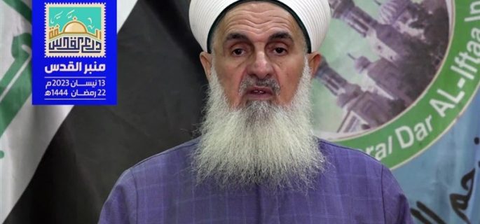 أكد رئيس “دار الافتاء” العراقية الشيخ مهدي الصميدعي “في كل عام وفي كل سنة يستذكر المسلمون يوم القدس العالمي، هذا اليوم الذي هو يعتبر هوية لجميع المسلمين وخاصة من أنصار القضية الفلسطينية الذين يشعرون ويستشعرون أن القضية الفلسطينية هي كيانهم وهي شخصيتهم وكرامتهم في الدين وكرامتهم في الدنيا.
