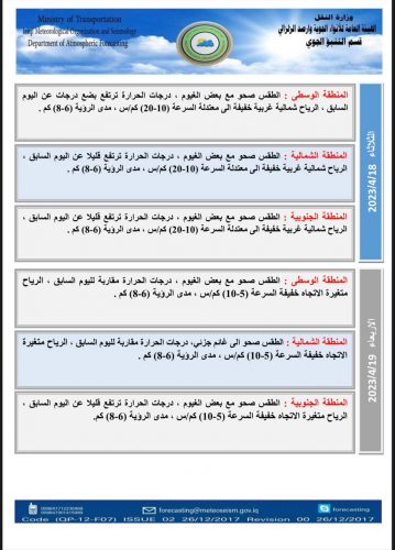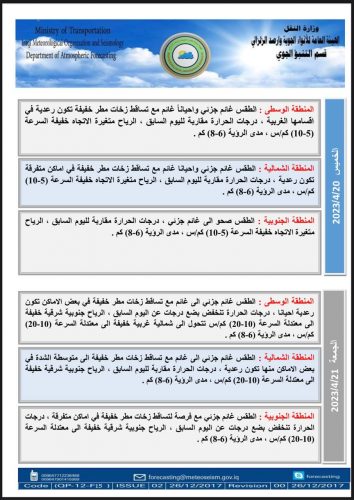حالة الطقس : أمطار خفيفة الخميس والجمعة المقبلين