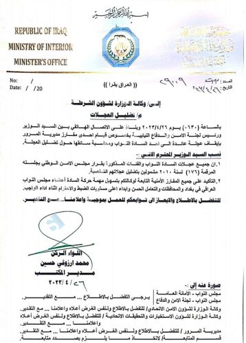 بالوثيقة.. وزير الداخلية يوجه المفارز الأمنية بتسهيل حركة النواب والتعامل الحسن معهم
