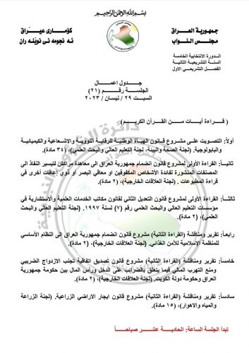 مجلس النواب ينشر جدول أعمال جلسة السبت المقبل