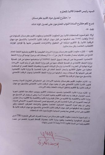بالوثائق : التعديلات النهائية بما يخص حصة إقليم كردستان بالموازنة الاتحادية