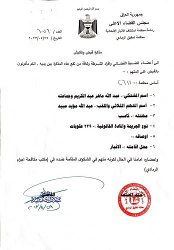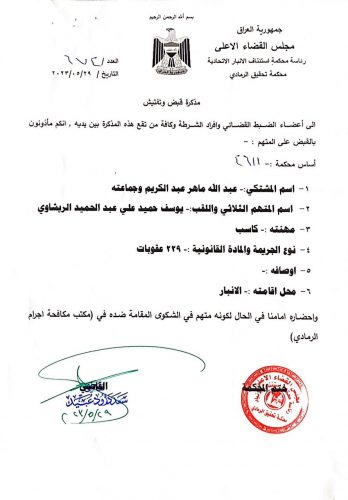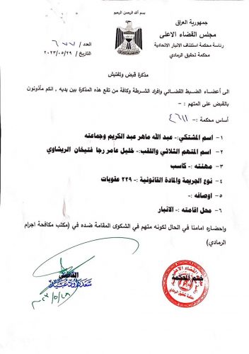 اوامر قبض بحق سطام ابو ريشة واخرين