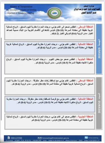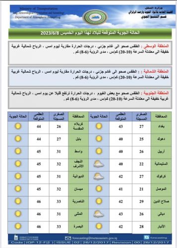 حالة الطقس للأيام الاربعة المقبلة