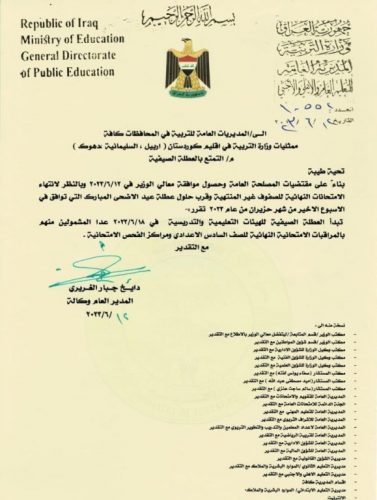 وزارة التربية تحدد 18 حزيران موعداً لبدء العطلة الصيفية للهيئات التعليمية والتدريسية