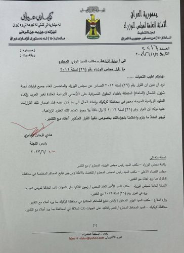 بالوثيقة.. مجلس الوزراء يلغي جميع القرارات المتعلقة بالاراضي الزراعية العائدة لغير العرب بكركوك