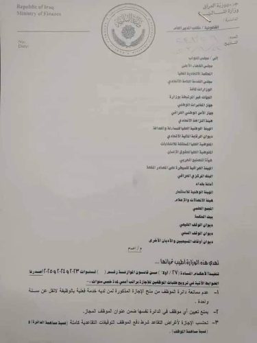 وزارة المالية تصدر تعليمات اجازة الـ 5 سنوات للموظفين الراغبين في الحصول عليها