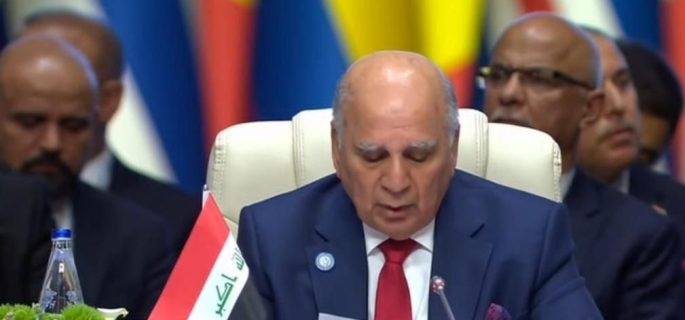 ونوه حسين، بأنه” في الملف الفلسطينيّ، تشهد فلسطين المحتلة اليوم هجمة شرسة تشنها قوات الكيان الاسرائيلي على مخيم جنين في الضفة الغربيَّة والتي أسفرت عن سقوط شهداء وجرحى وتدمير المنازل وتجريف الأراضي”، مُؤكداً” أدانة حكومة العراق بأشد العبارات هذا العدوان، إذ تؤكد موقفها المبدئيّ والثابت والداعم للشعب الفلسطينيّ وقضيته العادلة، وتطالب المؤتمر الموقر باتخاذ موقف قوي لإنصاف ونصرة الشعب الفلسطيني”.