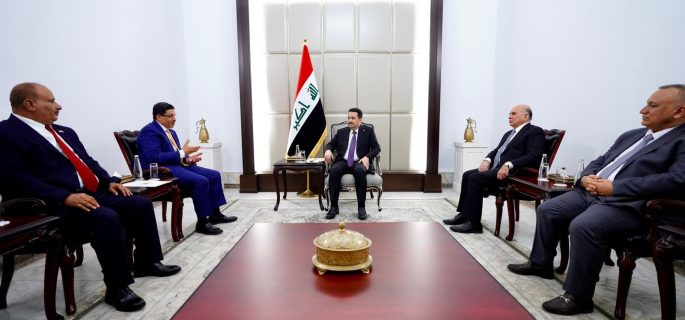 وذكر المكتب الإعلامي لرئيس مجلس الوزراء في بيان تلقت*الرأي* الدولية نسخة منه، أن “رئيس مجلس الوزراء محمد شياع السوداني، استقبل اليوم الأحد، وزير خارجية اليمن، أحمد عوض بن مبارك والوفد المرافق له” ،مبيناً أنه “جرى، خلال اللقاء، البحث في مجمل ملفات العلاقة بين العراق واليمن، وسبل تعزيز التعاون المشترك، بما يعزز التنمية الشاملة وأمن المنطقة وازدهارها”.