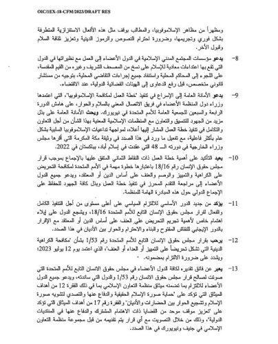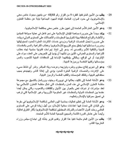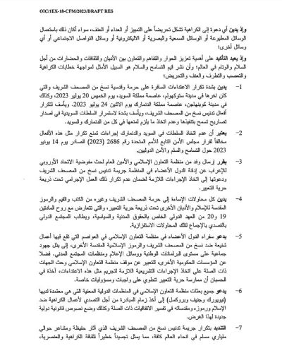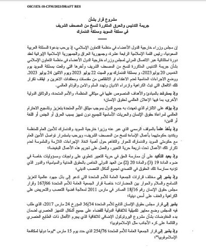 وأصدرت منظمة التعاون الإسلامي مشروع قرار بشأن جريمة حرق القرآن الكريم تضمن عدد من النقاط أدناه