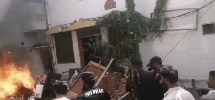وأظهرت صور تم تداولها على وسائل التواصل الاجتماعي، دخانا يتصاعد من كنيسة ومن أثاث، مثل أسرّة وكراس، أضرمت فيها النيران وسط الشارع.