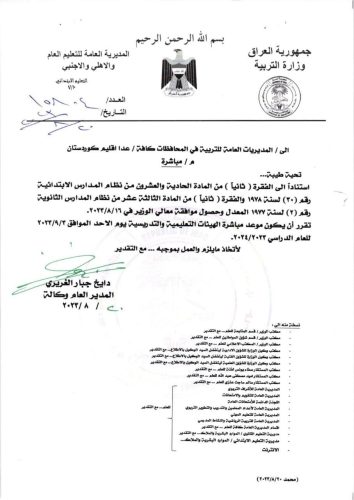 بالوثيقة : التربية تحدد موعد مباشرة الهيئات التعليمية و التدريسية في المديريات العامة
