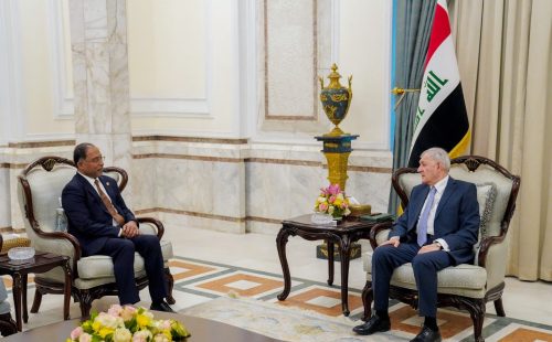 وأكد الرئيس “أهمية تعزيزها وتنميتها في المجالات ذات الاهتمام المشترك، وبما يحقق المصالح المتبادلة للشعبين والبلدين”، مشيرا الى “حرص العراق على بناء علاقات طيبة مع دول الجوار والعالم”.
