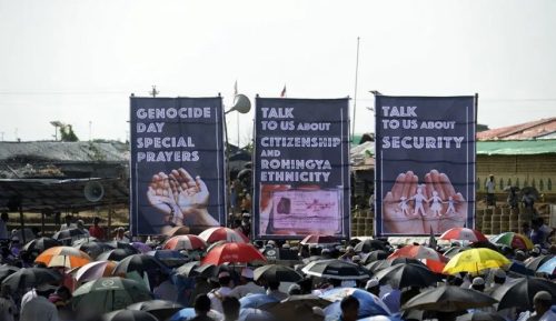 تظاهر آلاف من اللاجئين الروهينغا في مخيمات ببنغلادش مطالبين بعودة آمنة إلى بورما في الذكرى السادسة لأعمال العنف التي دفعتهم إلى الفرار.