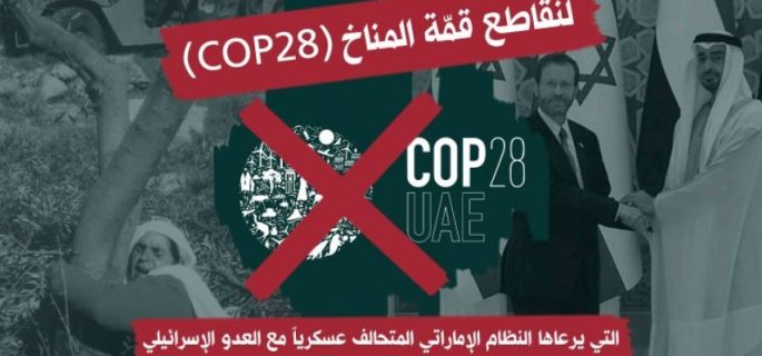 دعت اللجنة الوطنية الفلسطينية لمقاطعة “إسرائيل”، أوسع تحالف في المجتمع الفلسطيني وقيادة حركة المقاطعة (BDS)، إلى مقاطعة مؤتمر الأمم المتحدة لأطراف المناخ (COP28) المقرر في دولة الإمارات.