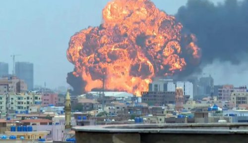 أما في الخرطوم فقدت هزت انفجارات عنيفة ومتتالية أطلقتها مدفعية الجيش باتجاه مواقع مختلفة لقوات الدعم السريع حول محيط منطقتي أرض المعسكرات والمدينة الرياضية الواقعتين جنوب شرق العاصمة الخرطوم. انتهى