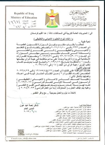 وزارة التربية تصدر قراراً يخص طلبة الصف السادس الاعدادي