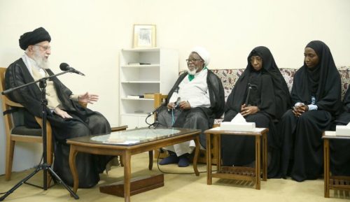 وخلال استقباله زعيم الحركة الإسلامية في نيجيريا الشيخ “إبراهيم زكزاكي” وعائلته اليوم السبت ثمن قائد الثورة الإسلامیة الجهود التي بذله الشيخ زكزاكي وعائلته معتبرا أن تزايد قوة الإسلام في العالم رغم المؤامرات الواسعة هو نتيجة النضال والمجاهدات وقال ان ما يجري في فلسطين من مظاهر قوة الإسلام وعلى العالم الإسلامي كله أن يساعد الشعب الفلسطيني.