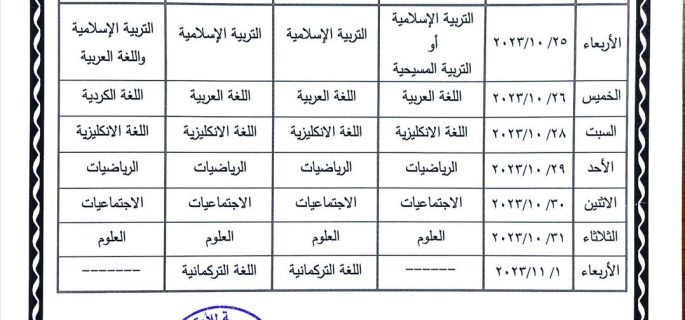 جدول الامتحانات العامة للابتدائية والتعليم المسرع