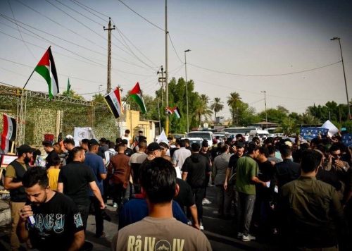 انطلق مئات المواطنين، اليوم الجمعة، بتظاهرة قرب جسر المعلق بمحافظة بغداد لنصرة الفلسطينيين في غزة.