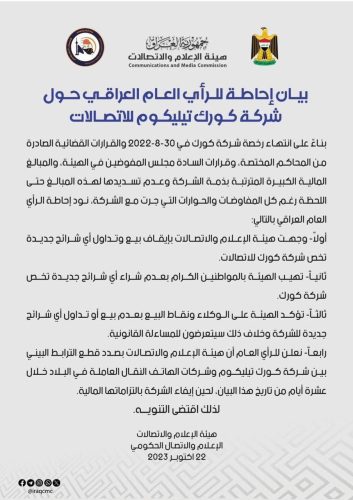 الإعلام والاتصالات توجه بإيقاف بيع وتداول أي شرائح جديدة تخص شركة كورك