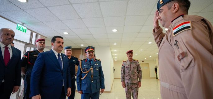 وقال رئيس الوزراء في كلمته خلال افتتاح كلية القوّة الجوية في قاعدة الصويرة الجوية، “نجتمعُ اليومَ لافتتاحِ كليةِ القوةِ الجويةِ لتكونَ صرحاً آخرَ يضافُ إلى سلسلةِ ما تمتلكهُ هذه القيادةُ من كلياتٍ وقواعد، ليواصلَ من خلالها أبطالُ هذا الصنفِ الحيوي جهودَهم الجبارةَ في حمايةِ سماءِ العراقِ والدفاعِ عن سيادتِه”.