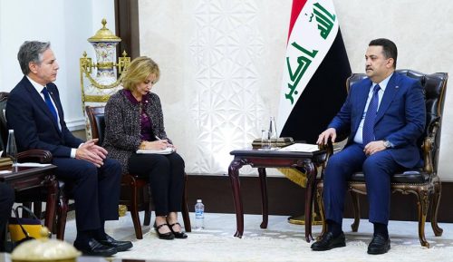 وذكر المكتب الاعلامي لرئيس الوزراء في بيان تلقت *الرأي* الدولية نسخه منه أن “رئيس مجلس الوزراء محمد شياع السوداني استقبل وزير الخارجية الأمريكي، أنتوني بلينكن”.