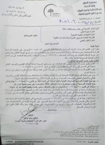 بالوثيقة : الصحة تفتح باب التقديم للدراسات الاولية الصباحية والمسائية