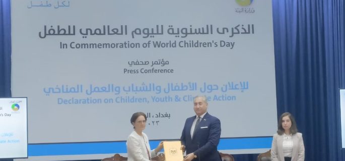وأوضح، أن “التعاون الاستراتيجي مع اليونيسيف يصب في مصلحة الحكومة العراقية في تطوير المناخ”، مشيرا الى ان “التغيير المناخي يمثل تحديا بالنسبة لنا لتأثيراته على البيئة”.