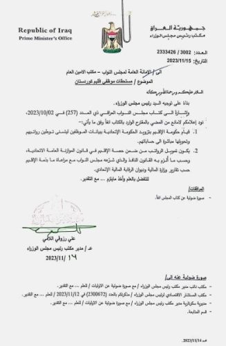 بالوثيقة.. الاتحادية تؤكد عدم ممانعتها توطين رواتب موظفي إقليم كردستان