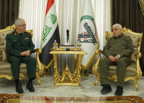 استقبل رئيس هيئة الحشد الشعبي فالح الفياض، اليوم الإثنين، رئيس أركان الجيش الإيراني اللواء محمد باقري والوفد المرافق له في مكتبه ببغداد بحضور رئيس أركان الحشد عبد العزيز المحمداوي.