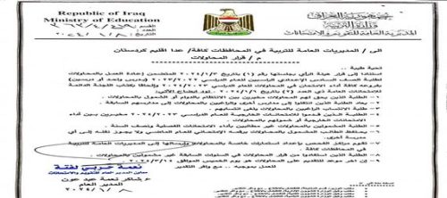وزارة التربية تنشر تعليمات قرار “المحاولات” لطلبة السادس الاعدادي