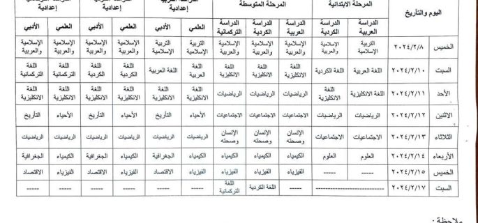 وزارة التربية تعلن جدول الامتحانات التمهيدية (الخارجي) للعام الدراسي 2023 – 2024