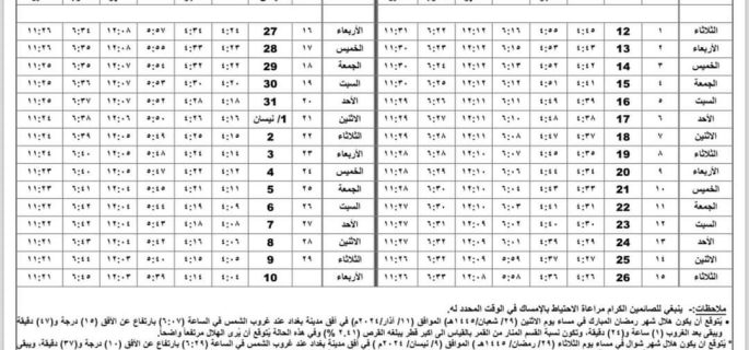 نشر مكتب المرجع الديني الأعلى آية الله العظمى السيد علي السيستاني، اليوم الجمعة، امساكيات شهر رمضان المبارك.