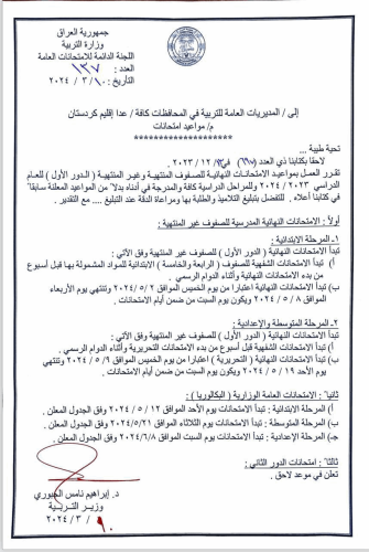 بالوثيقة : التربية تحدد مواعيد الامتحانات النهائية للصفوف المنتهية وغير المنتهية