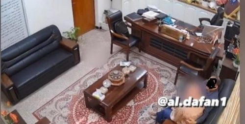 وتسربت صور ومقاطع فيديو من داخل مكتب العميد في الكلية مع احدى الطالبات.
