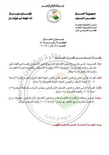 جدول أعمال جلسة الأحد المقبل لمجلس النواب