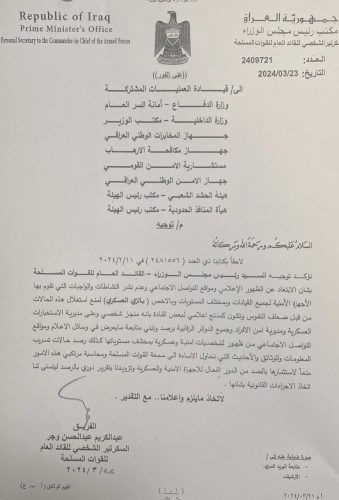 بالوثيقة: السوداني يوجه القادة العسكريين والأجهزة الأمنية بالابتعاد عن الظهور الإعلامي