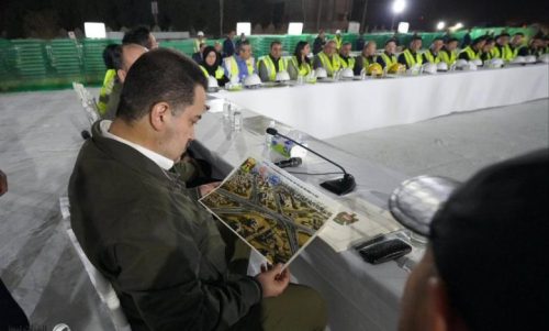 وذكر بيان للمكتب الإعلامي لرئيس مجلس الوزراء، تلقت*الرأي* الدولية نسخه منه أن “رئيس مجلس الوزراء محمد شياع السوداني، أجرى جولة تفقدية في موقع مشروع ساحة النسور، وهو من مشاريع فكّ الاختناقات المرورية غرب العاصمة بغداد، يرافقه وزير الإعمار والإسكان بنكين ريكاني، ومسؤول شركة تشاينا ريل وي/ China Railway الصينية المنفذة”.