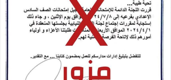 التربية تنفي كتاباً مزوراً يخص تأجيل الامتحانات الوزارية للصف السادس الإعدادي