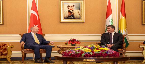 /أكد رئيس اقليم كردستان نجيرفان بارزاني، خلال لقائه الرئيس التركي رجب طيب أردوغان في أربيل، أن إقليم كردستان سيظل عامل أمان واستقرار في المنطقة.