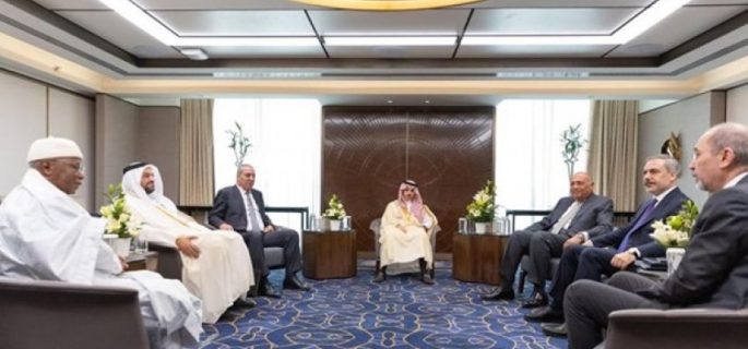 يذكر أن الإجتماع قد انعقد في الرياض، بحضور وزراء خارجية السعودية والأردن ومصر وتركيا، فيصل بن فرحان وأيمن الصفدي وسامح شكري وهاكان فيدان على الترتيب، والأمين العام لمنظمة التعاون الإسلامي حسين إبراهيم طه، وأمين سر اللجنة التنفيذية لمنظمة التحرير الفلسطينية وزير الشؤون المدنية حسين الشيخ، ووزير الدولة في وزارة الخارجية القطرية محمد بن عبدالعزيز الخليفي.انتهى