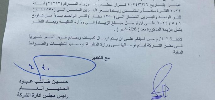 بالوثيقة : دخول قرار رفع أسعار البنزين المحسن والممتاز حيز التنفيذ اعتبارا من الغد