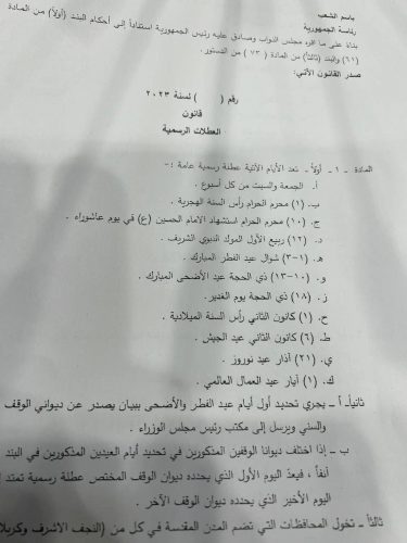 البرلمان يصوت على اعتبار عيد الغدير عطلة رسمية