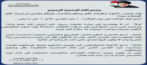 مقتدى الصدر يدعو إلى إحياء عيد الغدير بمجموعة من الفعاليات