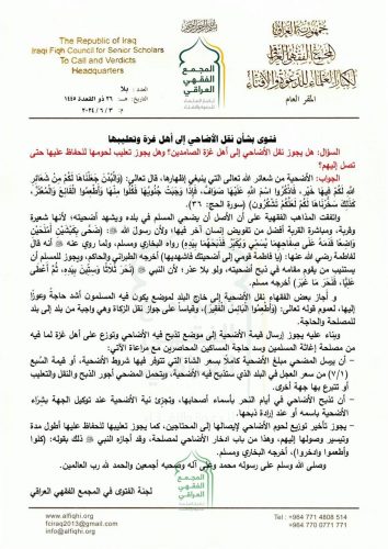 المجمع الفقهي العراقي يُجيز إرسال قيمة الأضحية إلى اهالي غزة